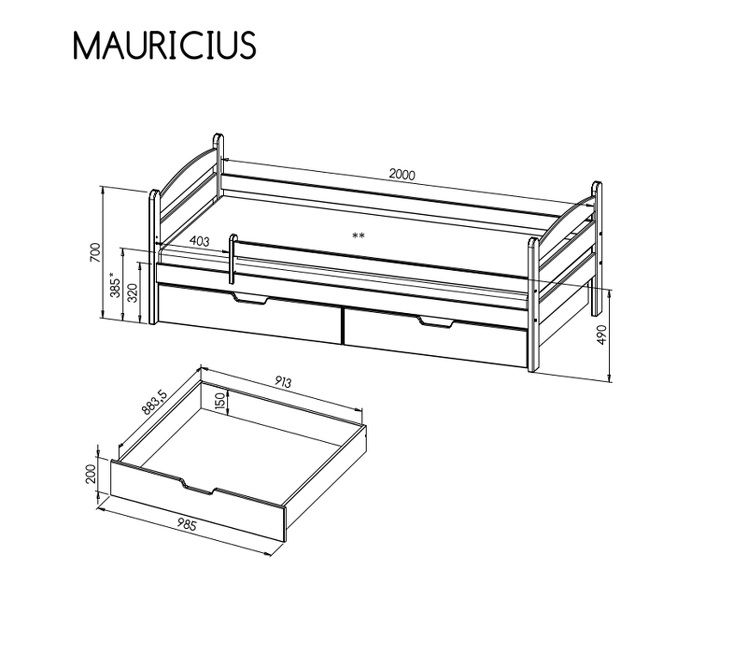 Praktická a kvalitná detská posteľ MAURICIUS je ideálnym riešením do každej detskej izby. Vďaka dvom výsuvným šuflíkom ponúka dostatok úložného priestoru na hračky, oblečenie či posteľnú bielizeň.