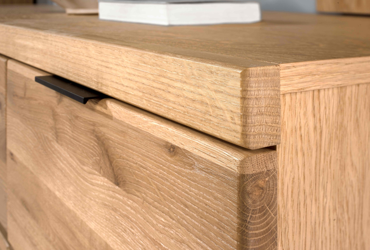 obývací nábytok z prírodného dubu NAPOLI, ktorý sa vyznačuje výbornou kvalitou prevedenia, použitých materiálov a dizajnom. Materiál, z ktorého je nábytok vyrobený