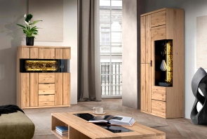 obývací nábytok z prírodného dubu NAPOLI, ktorý sa vyznačuje výbornou kvalitou prevedenia, použitých materiálov a dizajnom. Materiál, z ktorého je nábytok vyrobený