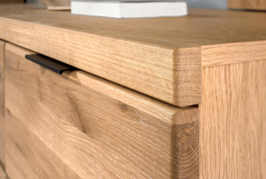 Obývacia stena NAPOLI zostava 1, určená pre náročných zákazníkov, obývací nábytok v kombinácii masívneho dubu, prírodnej dýhy a lamina, ktorý sa vyznačuje výbornou kvalitou prevedenia, použitých materiálov a dizajnu, od popredného európskeho výrobcu SZYNAKA. Materiál, z ktorého je nábytok vyrobený dvere - prírodný dubový masív kartáčovaný vo farebnom prevedení dub bianco a impregnovaný prírodným olejom. Korpusy - certifikovaná drevotrieska z vonkajšej strany potiahnutá prírodnou dýhou vo farebnom prevedení dub boston, z vnútornej strany je kvalitné lamino vo farebnom prevedení dub boston. Pánty / výrobca FURNISOL /, a guličkové vedenie v šuflíkoch je vybavené systémom pomalého zatvárania. Sklo vo vitrínach je tvrdené v hrúbke 4 mm, sklenné police v hrúbke 8 mm. Rámiky na dverách, stopky a úchytky sú kovové v čiernej farbe.