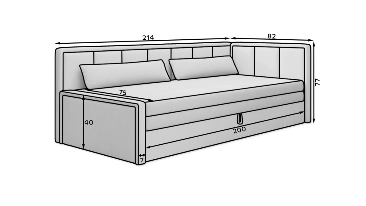 Úložný priestor - priestranný box v spodnej časti pohovky hravo pojme posteľnú bielizeň, vankúše či sezónne deky, čím pomáha udržiavať poriadok.