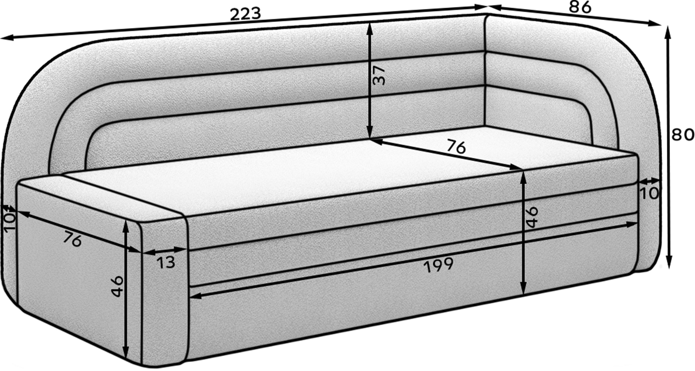 Pohovka Fabillo vyniká trendovými zaoblenými hranami, ktoré jej dodávajú elegantný a moderný vzhľad. Mäkké línie a oblé tvary z nej robia nielen funkčný, ale aj esteticky prívetivý prvok interiéru. Vďaka svojej univerzálnosti je vhodná do rôznych domácich priestorov – od obývačky, cez hosťovskú izbu až po detské a študentské izby.