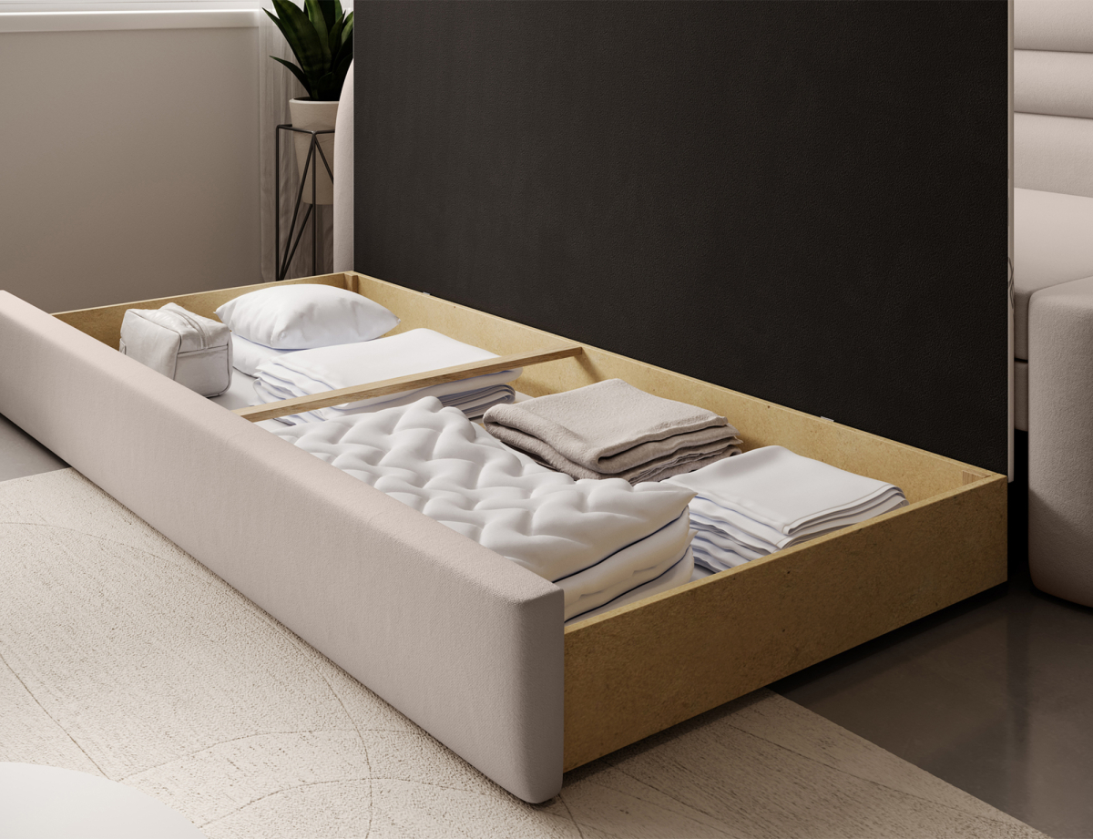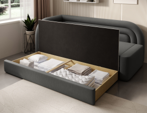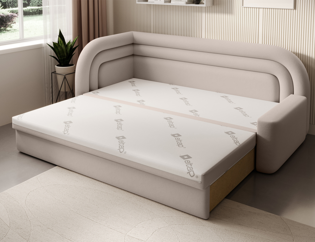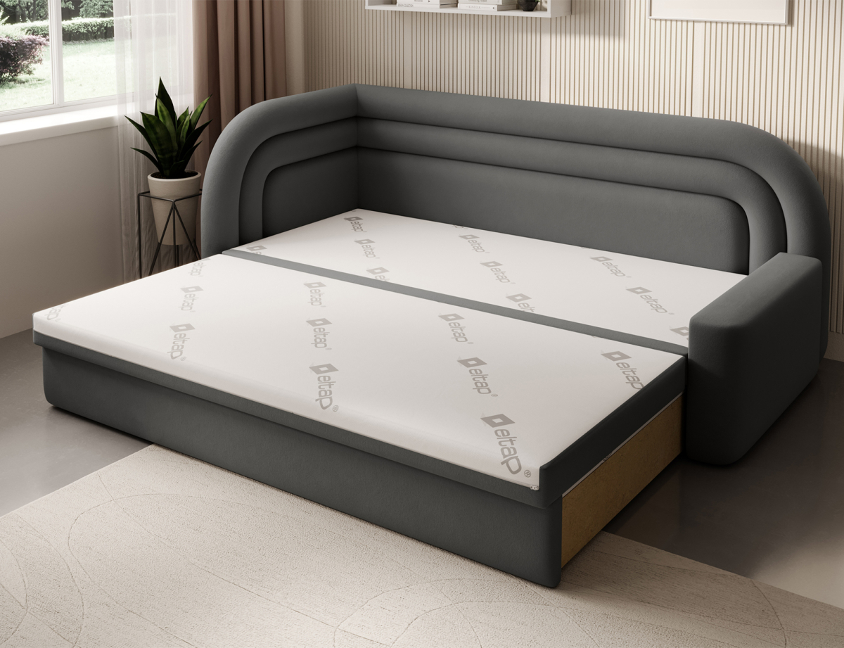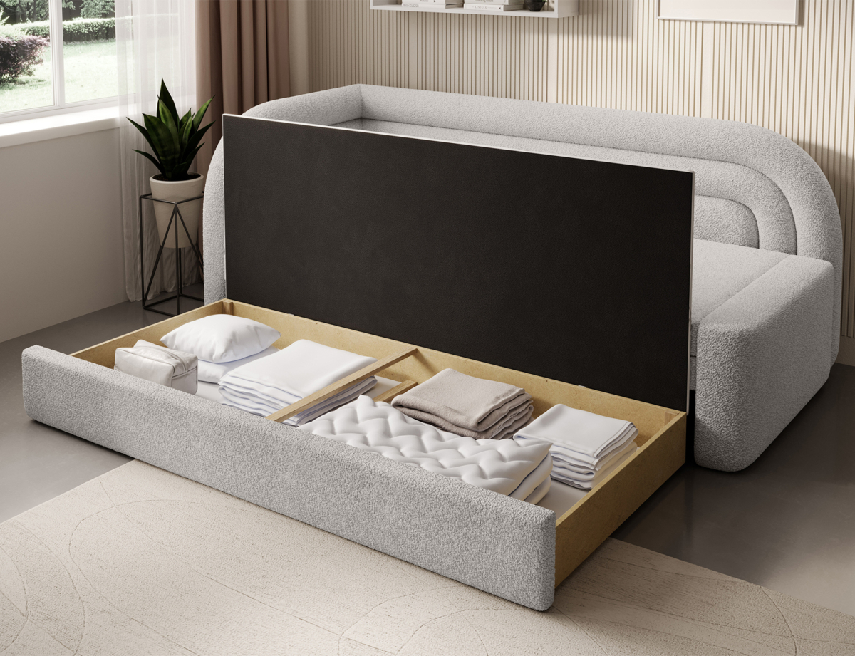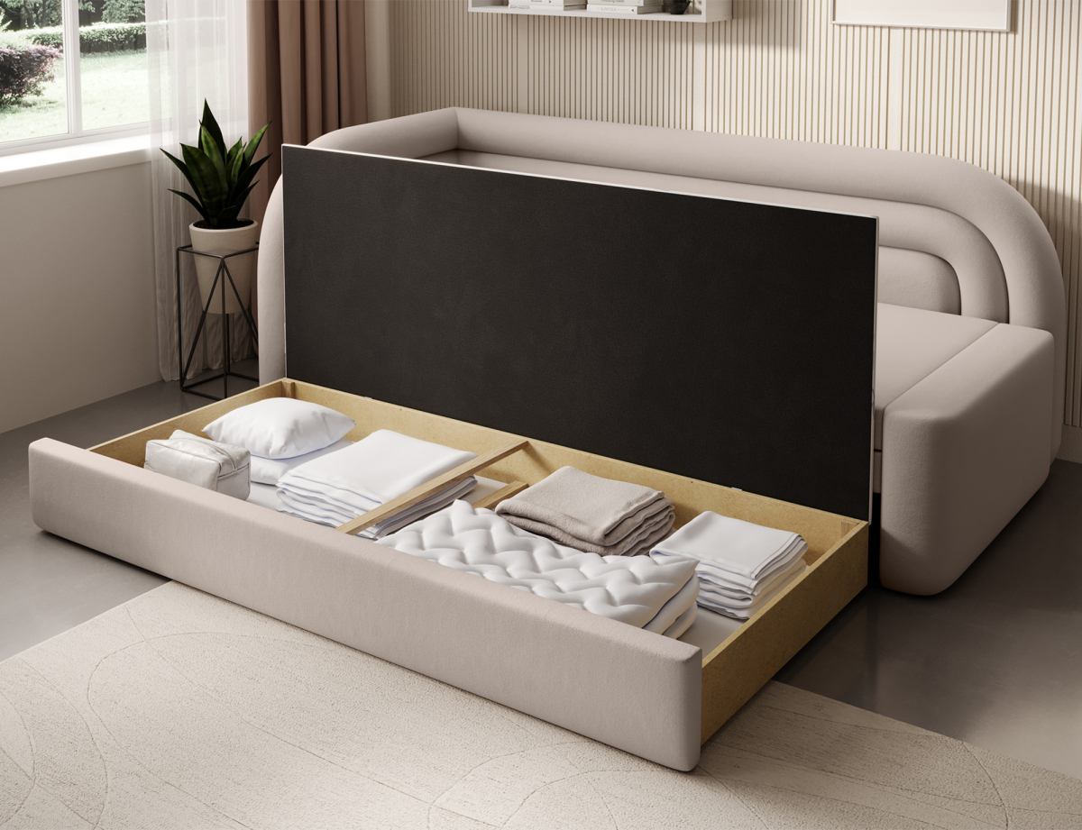 Fabillo disponuje aj funkciou spania, vďaka čomu je ideálnym riešením pre hostí alebo ako praktická prístelka. Rozkladací mechanizmus je jednoduchý a intuitívny – úložný priestor sa nachádza pod sedacou časťou a vysúva sa smerom von. Vrchný matrac sa následne rozloží otvorením „ako kniha“, čím prekryje úložný priestor a vytvorí rovnú a pohodlnú plochu na spanie.