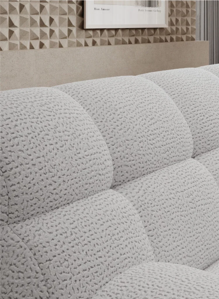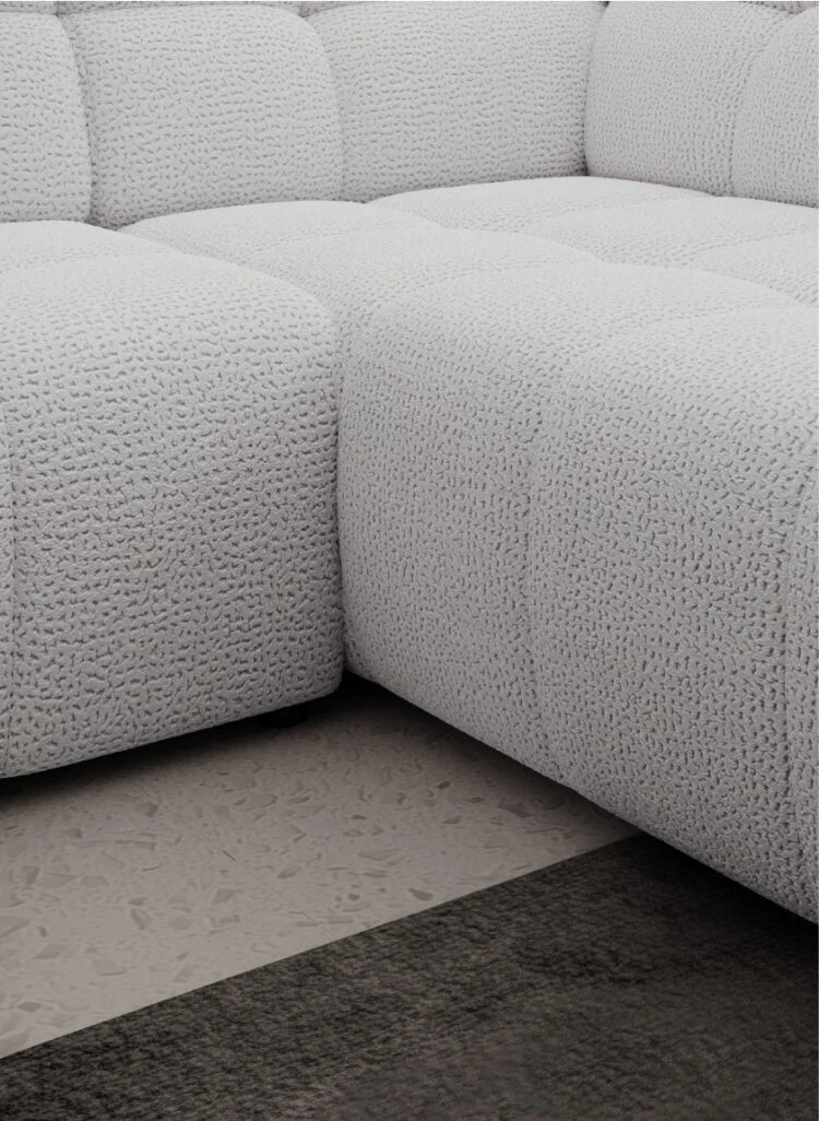 Sedačka COCOON je celočalúnená, takže ju môžete umiestniť aj do priestoru – pohľadová je zo všetkých strán. Na obrázku je zobrazené pravé rohové prevedenie v jemnej svetlej tkanine s výrazným čalúnením do štvorcov. Súprava je dostupná v pravom a ľavom rohovom prevedení, aby sa prispôsobila vášmu priestoru.