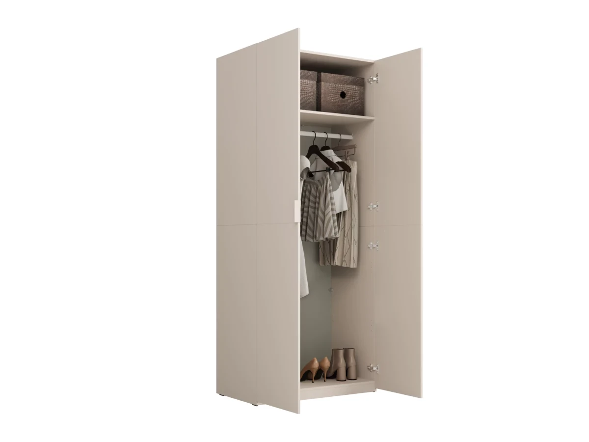 Šatníková skriňa MONTANA v modernom odtieni kašmír 24KSOL18 prináša praktické a štýlové riešenie úložného priestoru pre spálne, detské izby alebo predsiene. Táto dvojdverová skriňa s klasickým otváraním na pántoch je dostupná v troch moderných farebných variantoch, takže si ju ľahko prispôsobíte svojmu interiéru.