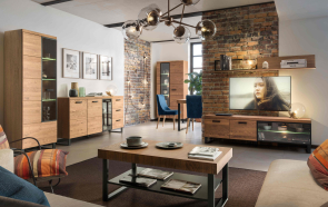 Obývací sektorový nábytok z prírodného dubového dreva PRATTO - rtv skrinka 25 vo farebnom prevedení dub rustikál-čierna matná. Výrobca SZYNAKA opäť nenechal nič na náhodu, okrem moderného prepracovaného dizajnu, výbornej kvality prevedenia a použitých materiálov, zaujme aj svojou funkčnosťou a praktickosťou. Nábytok PRATTO je jedinečný, veľmi pevný a odolný a vďaka tomu vám bude slúžiť dlhé roky. Materiál z ktorého je nábytok vyrobený, dvere - prírodný dubový masív hĺbkovo kartáčovaný vo farebnom prevedení dub rustikál a zalakovaný. Korpusy - certifikovaná drevotrieska z vonkajšej strany potiahnutá prírodnou dýhou, z vnútornej strany je kvalitné lamino vo farbe dub rustikál. Pánty / výrobca FURNISOL /, a guličkové vedenie v šuflíkoch vybavené funkciou pomalého zatvárania, sklo vo vitrínach je tvrdené, čierne hliníkové rámiky na dverách, úchytky sú kovové v čiernej farbe a nábytok je položený na kovových podnožiach v čiernej farbe. LED osvetlenie je možné zakúpiť za príplatok.