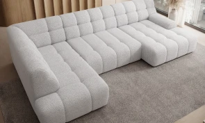 Sedačka COCOON je celočalúnená, takže ju môžete umiestniť aj do priestoru – pohľadová je zo všetkých strán. Na obrázku je zobrazené pravé rohové prevedenie v jemnej svetlej tkanine s výrazným čalúnením do štvorcov. Súprava je dostupná pravom aj ľavom rohovom prevedení, aby sa prispôsobila vášmu priestoru.