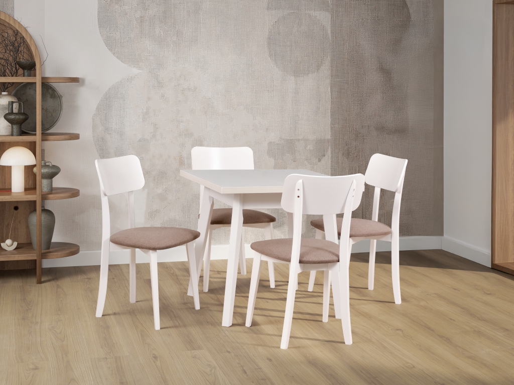 Materiál: Nohy a rám sú vyrobené z poctivého bukového masívu v teplom odtieni biela matná.