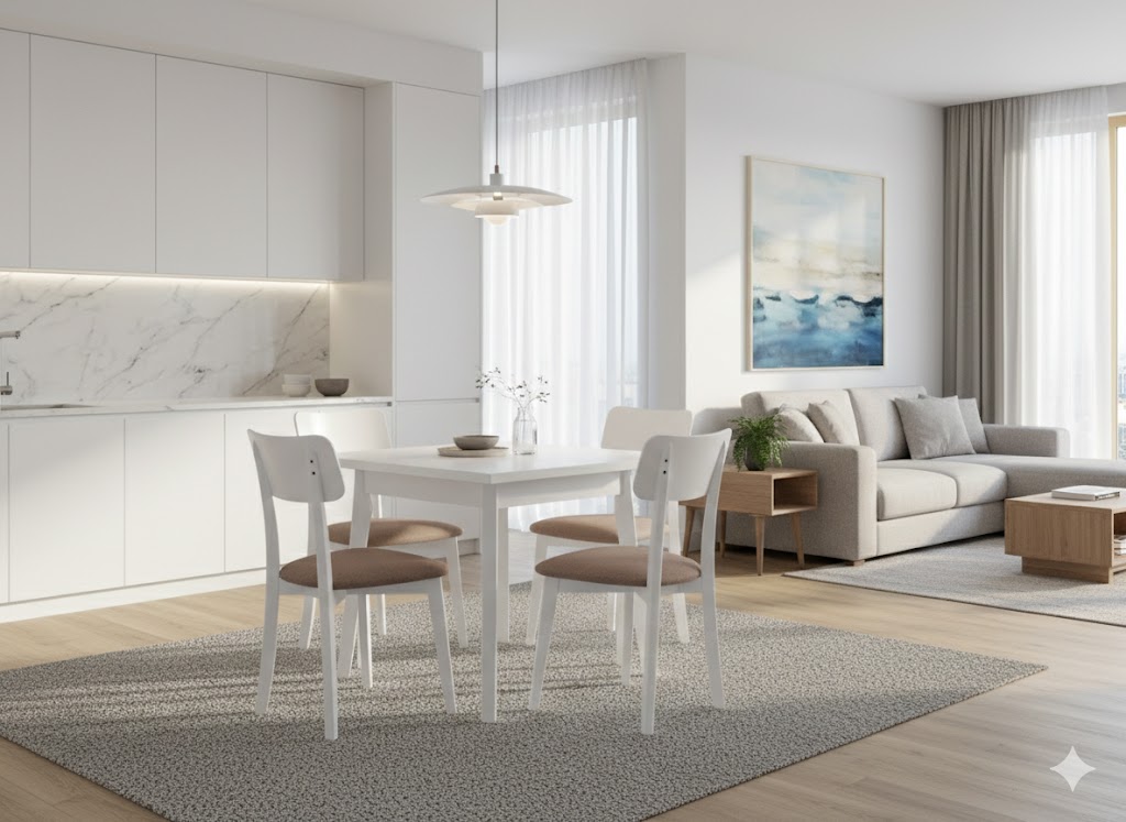 Elegancia a štýl: Odtieň bielej prináša do priestoru pocit čistoty a tepla.