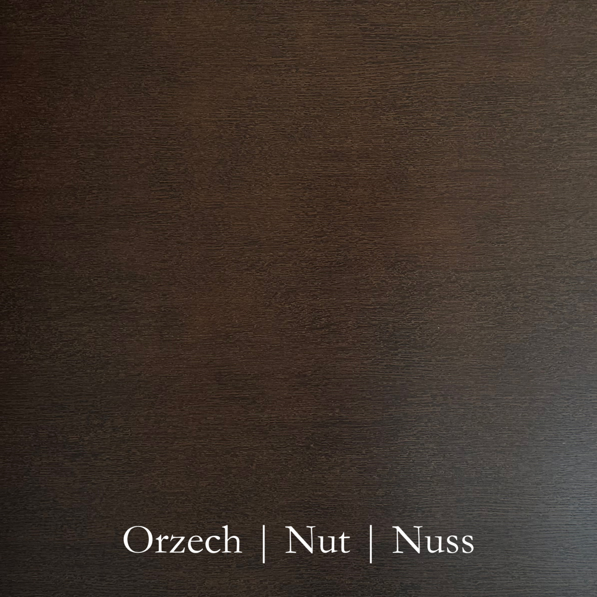 Odolnosť: Vrchná doska (plát) je z certifikovanej DTD potiahnutej prírodnou dýhou vo farbe orech, ktorá vyniká vysokou odolnosťou voči poškriabaniu.