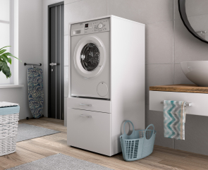 Praktická a veľmi pevná skrinka na práčku, alebo sušičku AZA 1S s nadstavcom. Skrinka je konštrukčne navrhnutá tak, aby odolala chveniu pri praní a odstreďovaní, vyrobená je z masívnej certifikovanej laminovanej drevotriesky, farebné prevedenie na obrázku kaašmír / 30KSME60 + nadstavec 30KSME08 /, hrany olepené ABS páskou, úchytky čierne plastové.