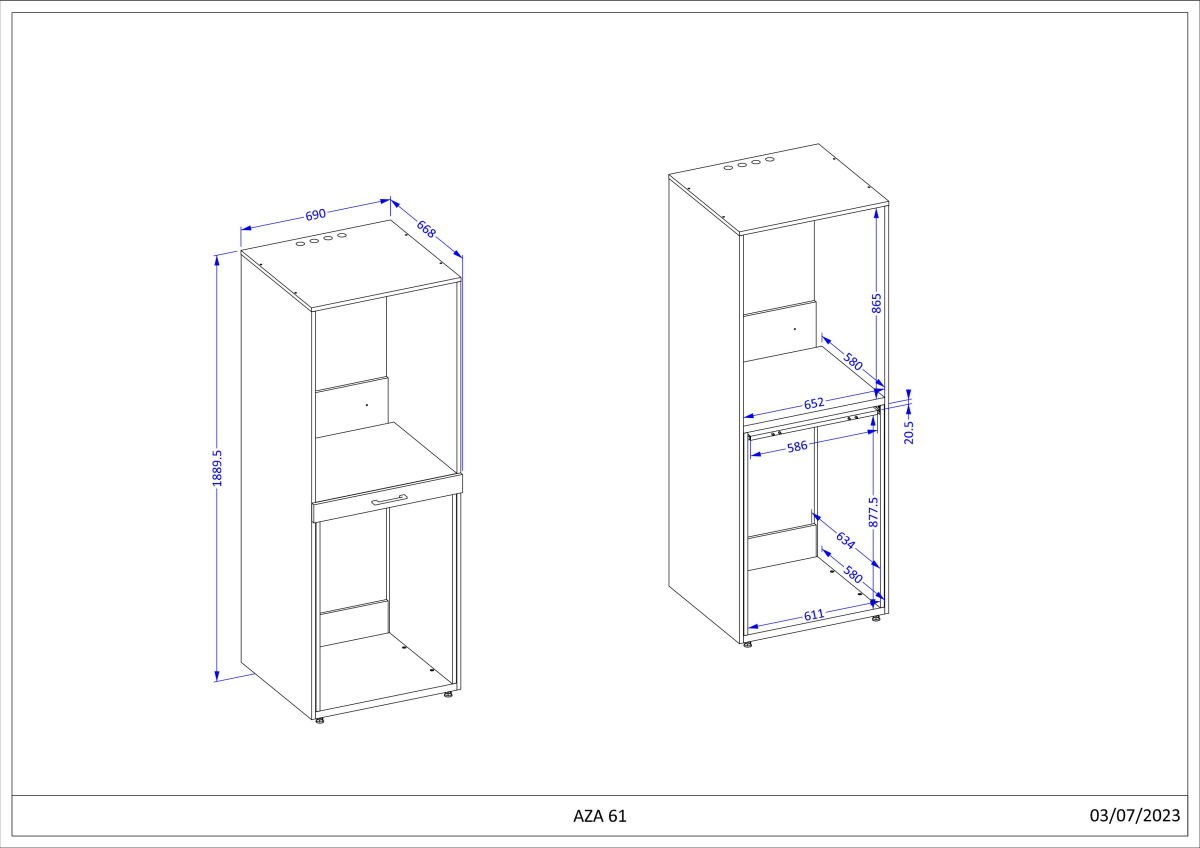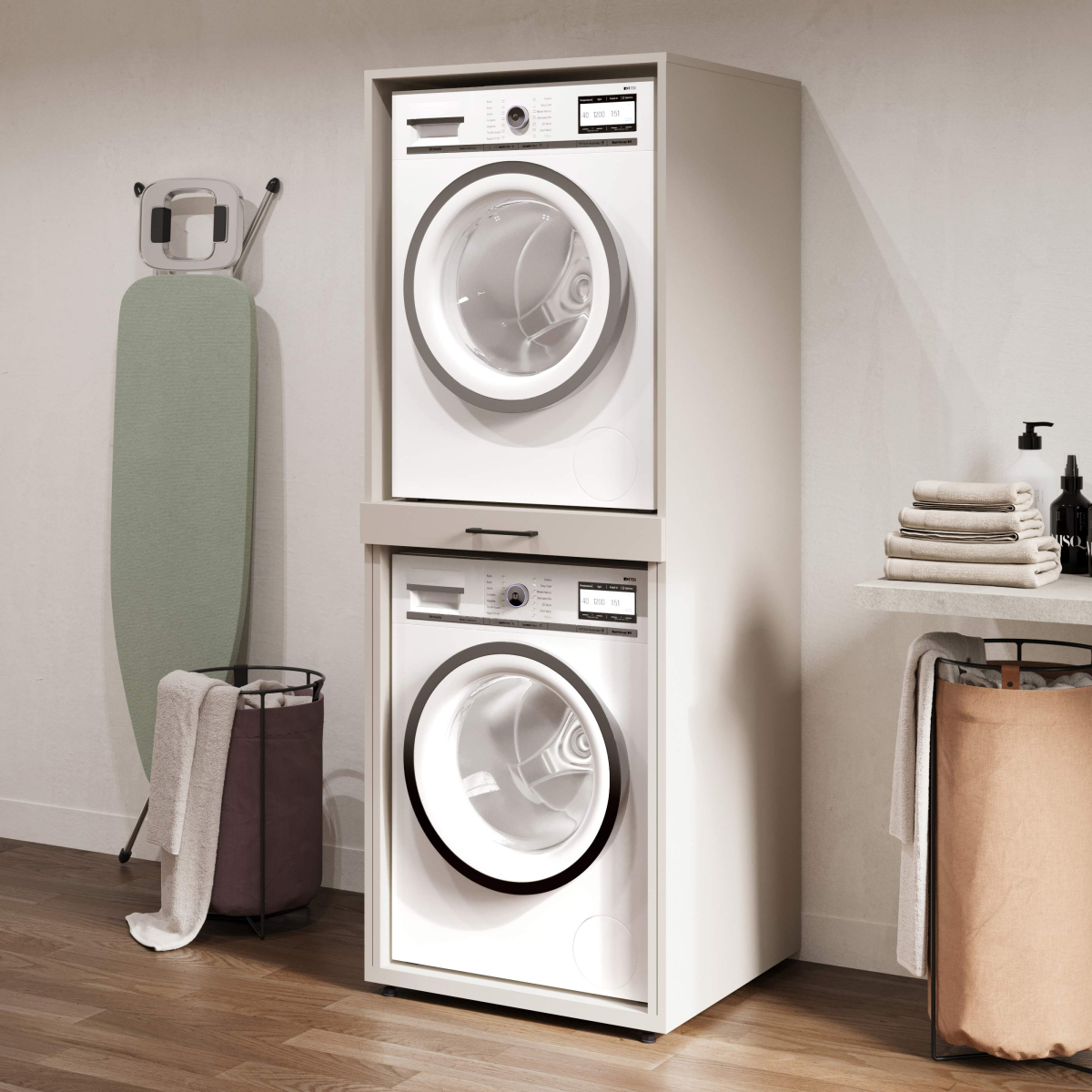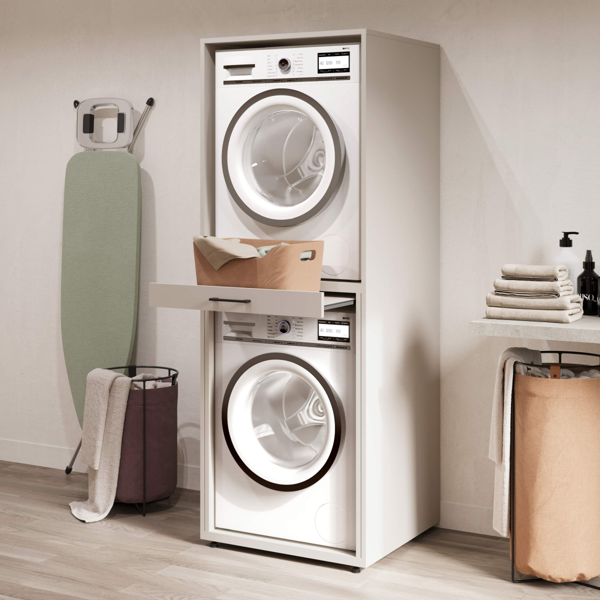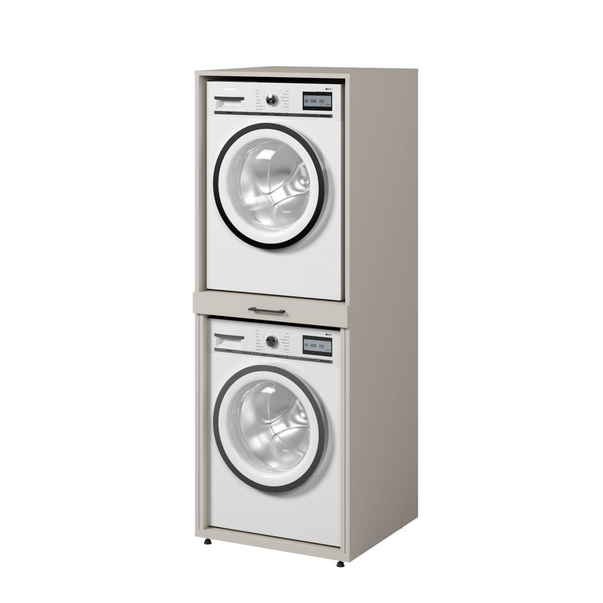 Praktická a veľmi pevná dvojskrinka na práčku, alebo sušičku AZA č.61. Skrinka je konštrukčne navrhnutá tak, aby odolala chveniu pri praní a odstreďovaní, vyrobená je z hrubej certifikovanej laminovanej drevotriesky, hrany olepené ABS páskou, úchytky čierne plastové.