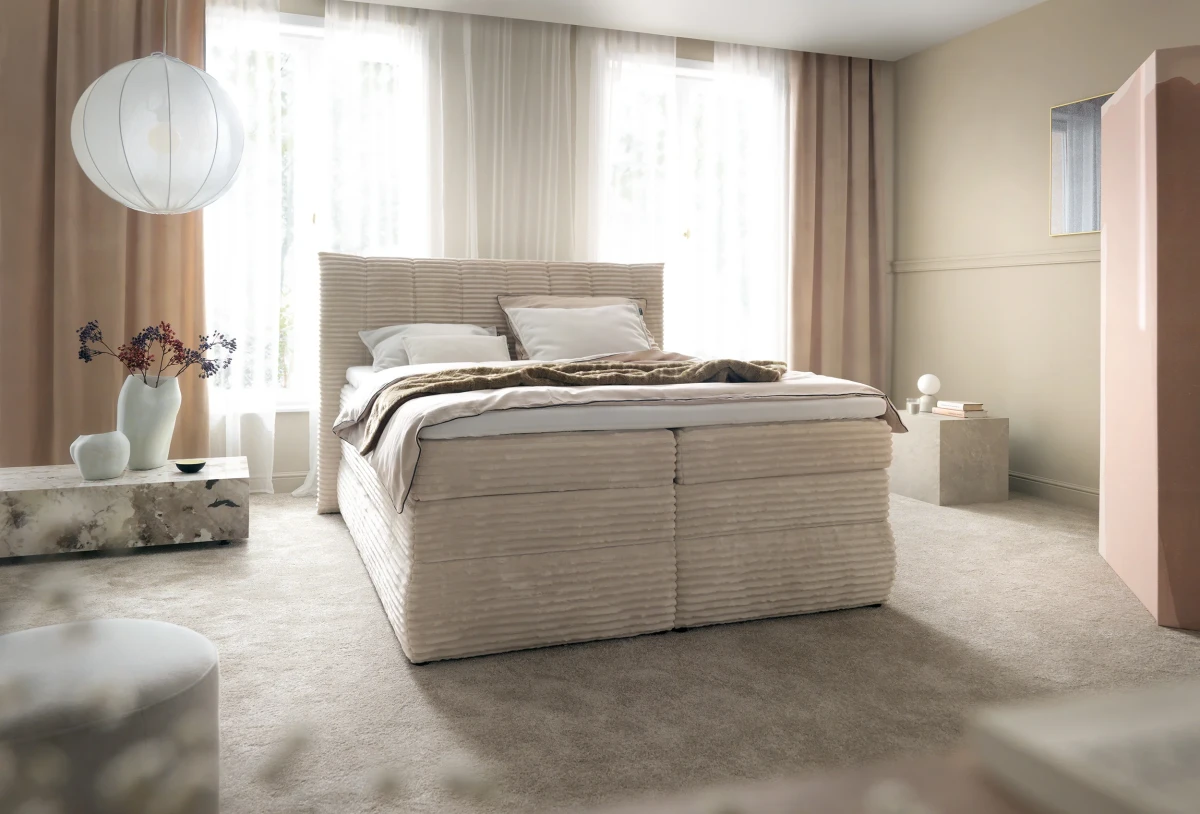 Vrchnú časť postele tvorí kvalitný 7-zónový taštičkový (pocket) matrac, v ktorom je každá pružina samostatne uložená v textilnej taštičke. Vďaka tomu matrac reaguje individuálne na tlak jednotlivých častí tela, poskytuje výbornú bodovú elasticitu a optimálnu oporu chrbtice. Sedem anatomických zón zvyšuje komfort spánku a minimalizuje prenos pohybu, čo ocenia najmä partneri.