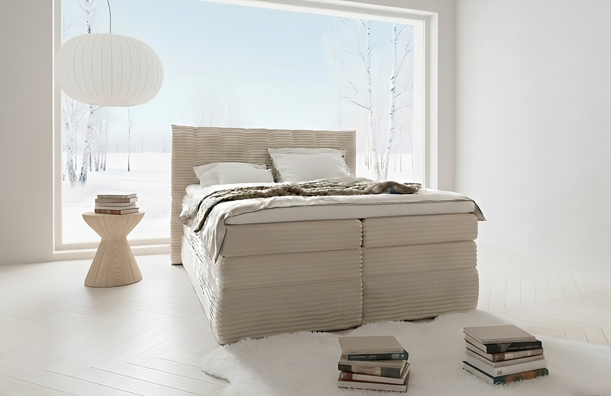 Nad úložným priestorom sa nachádza bonellová pružinová vrstva, ktorá tvorí pevný a stabilný základ celej postele. Táto vrstva zabezpečuje rovnomerné rozloženie hmotnosti tela, zvyšuje nosnosť lôžka a prispieva k dlhej životnosti konštrukcie.
