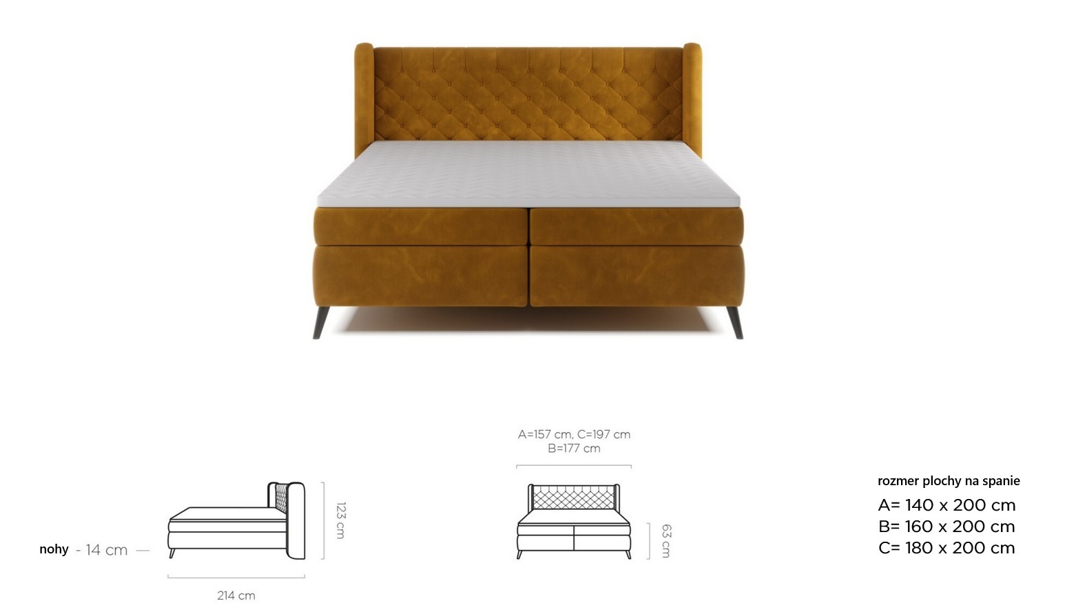 Posteľ Madison vyniká pikovaným vysokým čalúneným čelom s prešívaním, ktoré dodáva modelu elegantný a luxusný vzhľad a zároveň sa stáva vizuálnym stredobodom spálne. Vysoké čelo nie je len dekoratívne — slúži aj ako pohodlná opierka pri sedení alebo čítaní v posteli. Posteľ dopĺňajú dekoratívne panely po stranách, ktoré jej dodávajú jedinečný štýl a odlišujú ju od jednoduchších boxspring postelí.