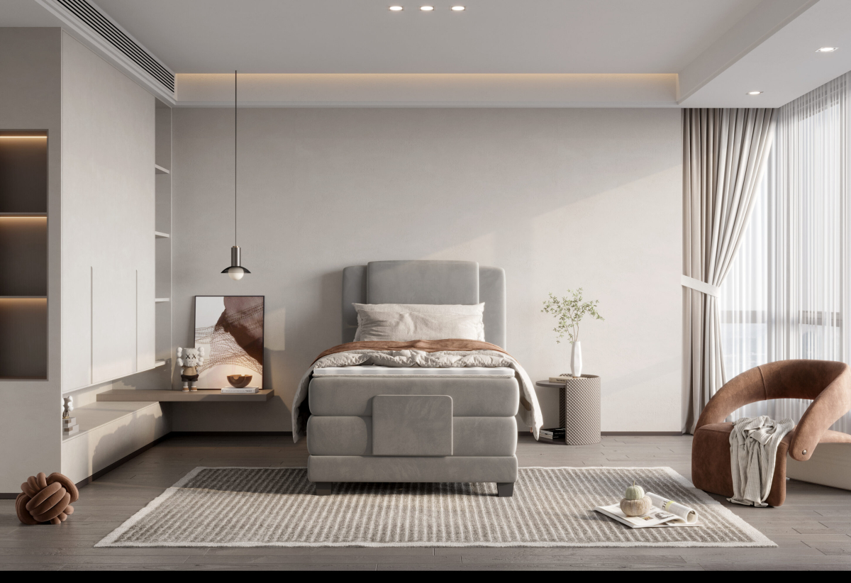 Posteľ Wave je navrhnutá pre tých, ktorí očakávajú maximálne pohodlie bez kompromisov. Vďaka elektrickému polohovaniu ležacej plochy si každý používateľ môže jednoducho nastaviť ideálnu polohu matraca presne podľa svojich potrieb. Či už ide o oddych po náročnom dni, čítanie alebo sledovanie televízie, posteľ Wave sa vždy dokonale prispôsobí a poskytne výnimočný komfort. Elegantná opierka hlavy zaručuje stabilnú oporu, zatiaľ čo pevné a stabilné nožičky zabezpečujú vysokú nosnosť a dlhú životnosť postele.