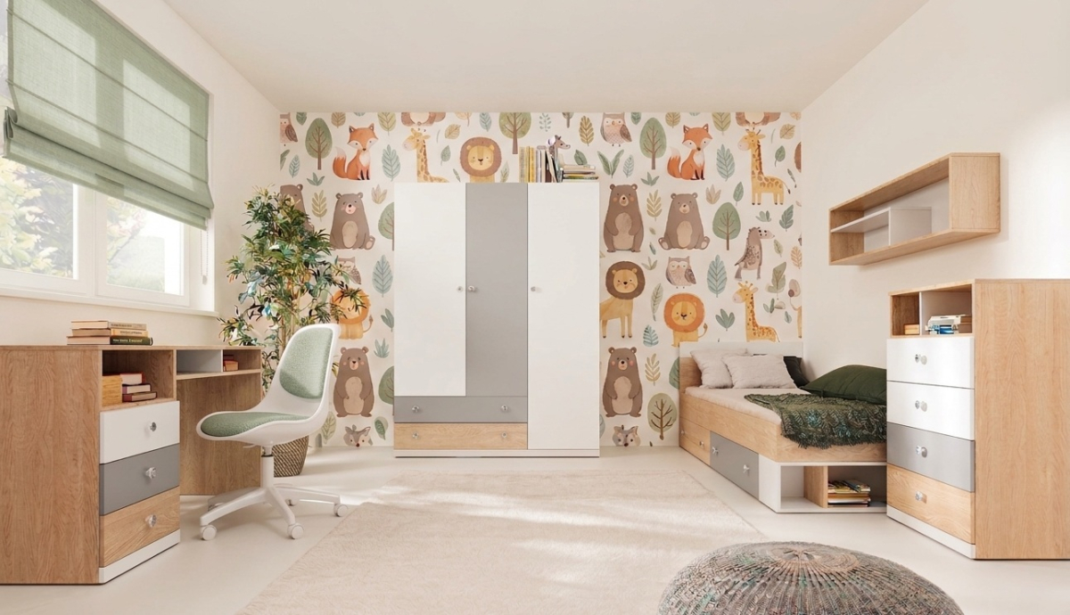 Nábytok je vhodný aj do menších priestorov. Vďaka širokej ponuke modulov umožňuje efektívne využiť každý kúsok miesta a doladiť interiér izby na maximum podľa individuálnych potrieb.