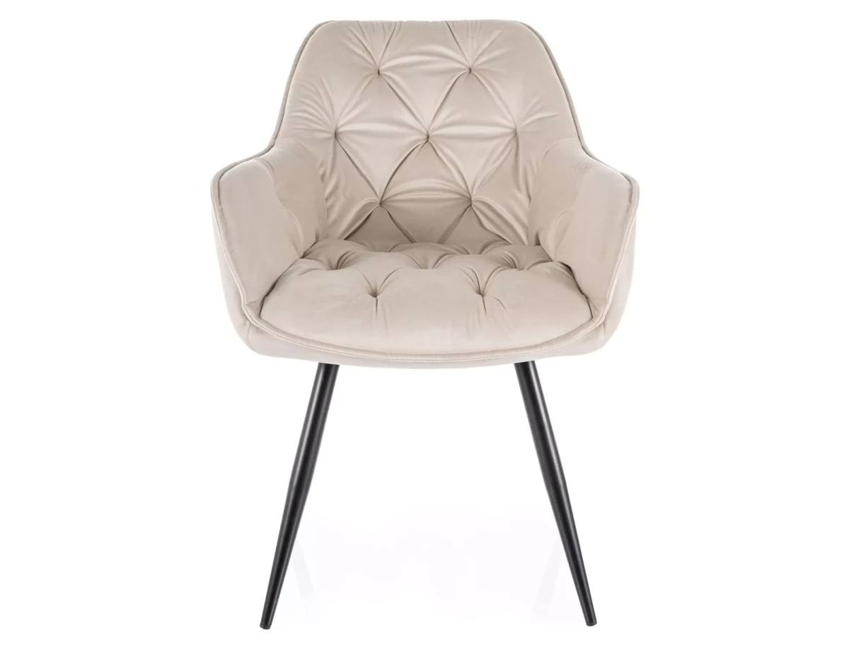Elegantná a pohodlná stolička CHERRY velvet zaujme na prvý pohľad svojím mäkkým čalúnením, prešívaným dizajnom a jemným zamatovým poťahom. Elegantné kapitonované čalúnenie s dekoratívnym vtiahnutím vytvára luxusný vzhľad a zvyšuje komfort. Sedacia časť i opierky na ruky sú súčasťou jedného korpusu, čo zaručuje kompaktný tvar a vyšší komfort pri sedení. Stolička je ideálna do jedálne, obývacej izby či do moderných kancelárií. Dodávaná v rozloženom stave pre jednoduchšiu prepravu a manipuláciu.