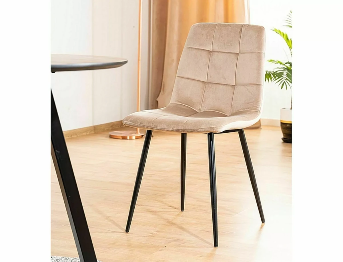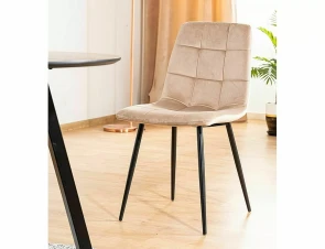 Stolička MILA na čiernych kovových nohách pôsobí ľahko a moderne. Nohy sú smerom k podlahe elegantne stenšené spojené krížovým výstužením pod sedákom, čo dodáva stabilitu a zároveň vizuálny akcent ľahkosti. Čalúnenie z látky Bluvel / na obrázku BLUVEL 28 bežová / vytvára príjemný kontrast s kovovou konštrukciou. Tento kvalitný zamat je nielen vizuálne atraktívny, ale aj mimoriadne príjemný na dotyk. Zloženie látky 100 % polyester (PES), odolnosť voči oderu 50 000 cyklov (Martindale test) – ideálna aj na každodenné používanie, gramáž: 320 g/m². Operadlo aj sedák sú zaujímavo prešívané a ergonomicky tvarované pre maximálne pohodlie pri sedení. Stolička je dodávaná v rozloženom stave, montáž je rýchla a jednoduchá.