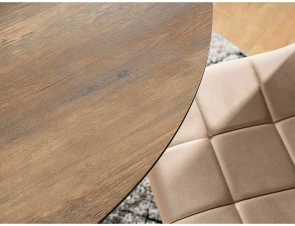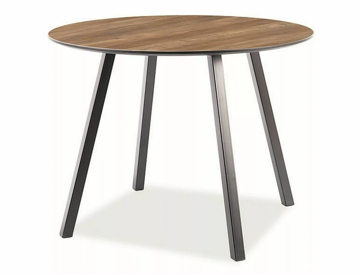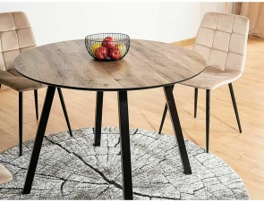 Jednoduchý okrúhly jedálenský stôl, s plátom z MDF a nohami z kovu