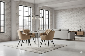 Moderný jedálenský set Rion Ø90 s keramickým plátom v čiernej matnej so štyrmi stoličkami CHERRY je ideálnym riešením pre menšie jedálne či kuchyne, kde oceníte kombináciu elegantného dizajnu a praktického prevedenia. Okrúhly stôl s mramorovým efektom a pohodlné čalúnené stoličky v sivej farbe vytvoria harmonický a štýlový interiér.