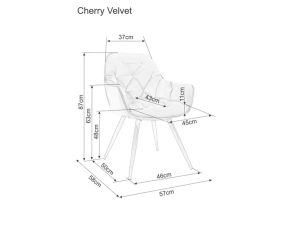 Elegantná a pohodlná stolička CHERRY velvet zaujme na prvý pohľad svojím mäkkým čalúnením, prešívaným dizajnom a jemným zamatovým poťahom. Elegantné kapitonované čalúnenie s dekoratívnym vtiahnutím vytvára luxusný vzhľad a zvyšuje komfort. Sedacia časť i opierky na ruky sú súčasťou jedného korpusu, čo zaručuje kompaktný tvar a vyšší komfort pri sedení. Stolička je ideálna do jedálne, obývacej izby či do moderných kancelárií. Dodávaná v rozloženom stave pre jednoduchšiu prepravu a manipuláciu.