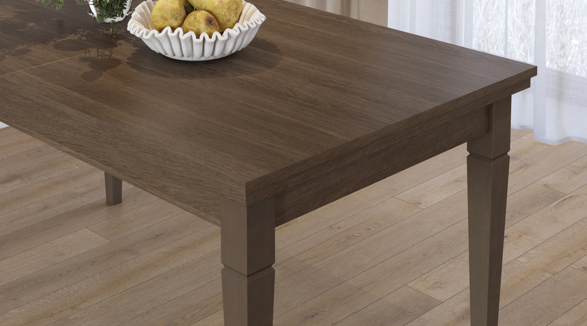 EVORA sektorový nábytok - jedálenský rozkladací stôl 24D1JU92 od firmy HELVETIA. Krásne farebné prevedenie dub dunin je výsledkom najnovších trendov bytových dizajnérov. Čo sa týka štýlu je možné nábytok EVORA zaradiť do modernejšej verzie klasického dizajnu, je vhodný do obývacej izby alebo jedálne. Plát je vyrobený z certifikovanej laminovanej DTD, nohy z prírodného dreva.