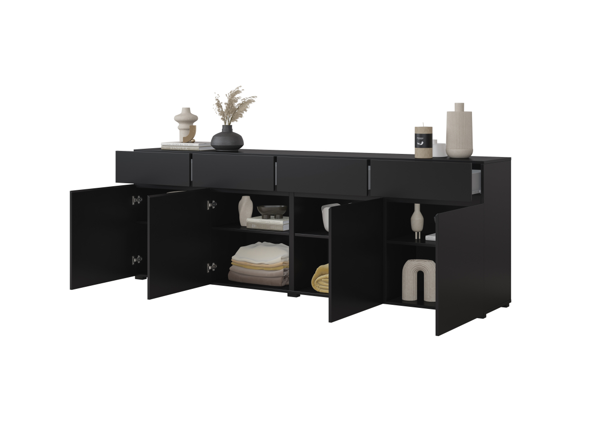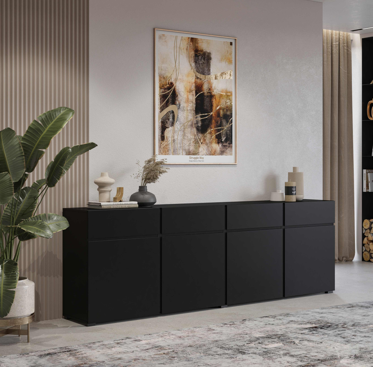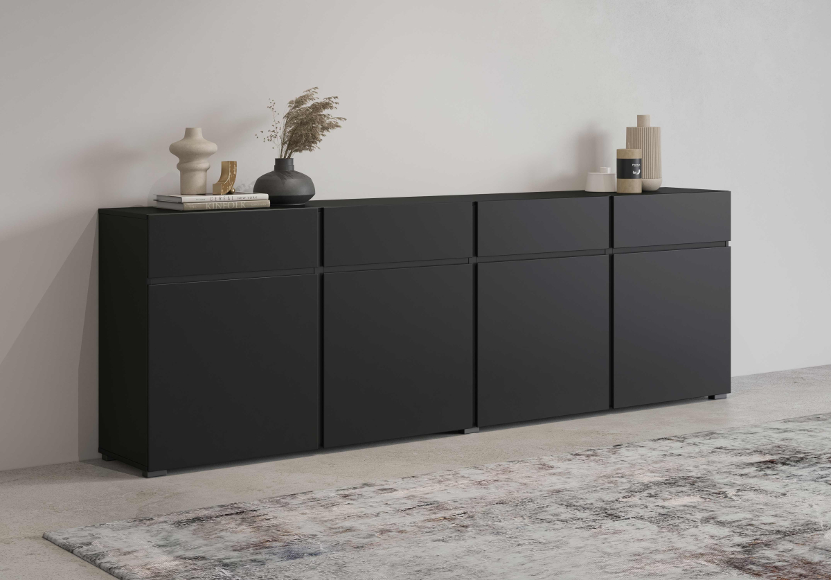 čierny onyx 24W3MY..,predstavuje moderné, elegantné a flexibilné riešenie pre zariadenie štýlovej obývačky. Minimalistický dizajn, čisté línie a luxusný matný povrch v odtieni čierneho onyxu vytvárajú nadčasový vzhľad, ktorý dokonale zapadne do moderných, industriálnych aj loftových interiérov.