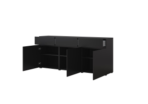 čierny onyx 24W3MY..,predstavuje moderné, elegantné a flexibilné riešenie pre zariadenie štýlovej obývačky. Minimalistický dizajn, čisté línie a luxusný matný povrch v odtieni čierneho onyxu vytvárajú nadčasový vzhľad, ktorý dokonale zapadne do moderných, industriálnych aj loftových interiérov.