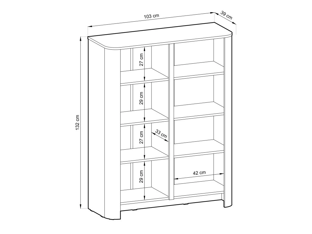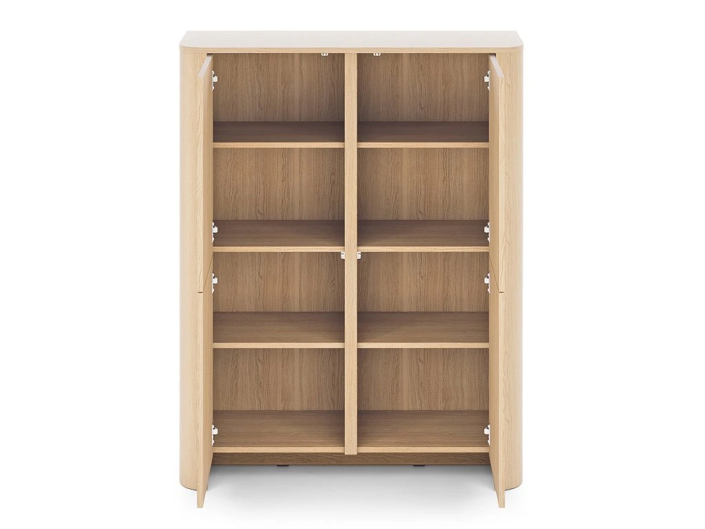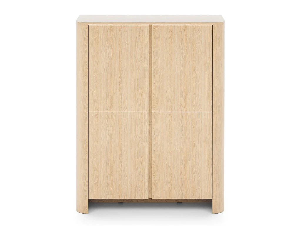Objavte spojenie prírody a moderného dizajnu s vysokou policovou komodou Bari K103 v dekore dub Vicenza. Štyri dvierka ukrývajú prehľadný úložný priestor na oblečenie, doplnky aj dokumenty. Minimalistický vzhľad, jemne zaoblené hrany a systém push-to-open zabezpečia jednoduché otváranie bez úchytiek a štýlový, elegantný interiér.