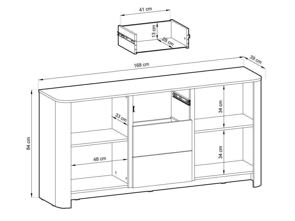 Doprajte svojej obývačke moderný a elegantný vzhľad s komodou BARI KSZ168 v teplom dekore dub Vicenza. Trojica zásuviek a dvere po stranách skrývajú úložný priestor na všetko, čo potrebujete, od dokumentov po dekorácie.