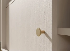 Vyrobená je z kvalitnej laminovanej DTD, doplnená o kovové nohy a kovové úchytky, ktoré nábytku dodávajú stabilitu, ľahkosť a moderný vzhľad. Piesková farba korpusu v kombinácii so zlatými úchytkami a čiernymi kovovými nohami vytvára harmonický, elegantný kontrast, ktorý krásne vynikne v každom svetlom a vzdušnom interiéri.