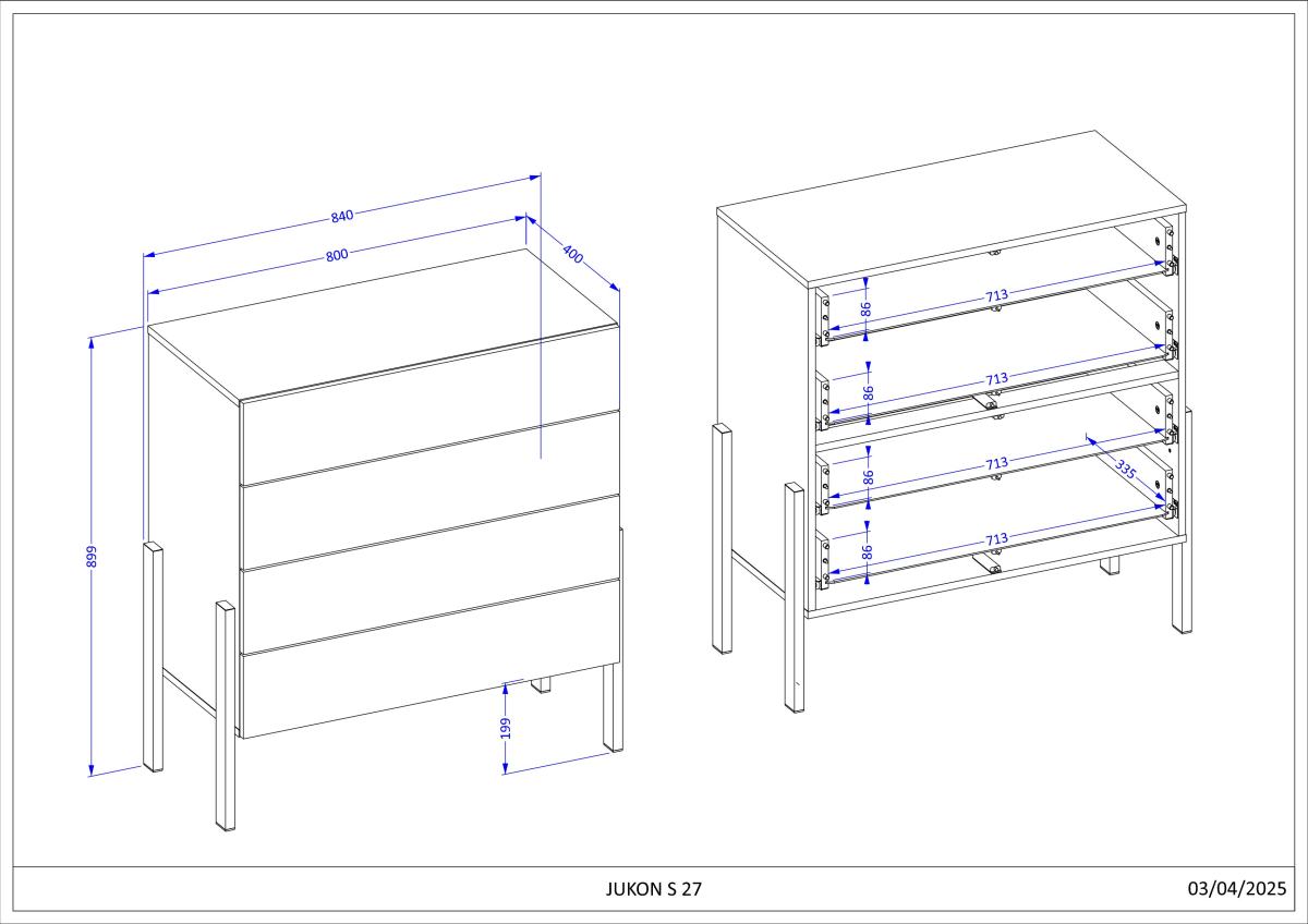 - komoda 24KSND27, šírka 84cm x výška 90 cm x hĺbka 40 cm