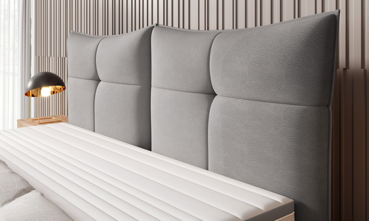 Kožená posteľ CADIS je elegantný a moderný model, ktorý zaujme originálnym čalúneným čelom pripomínajúcim nadýchané vankúše. Jeho tvar a prešívanie dodávajú spálni útulný a luxusný nádych a vytvárajú ideálne miesto na relax.