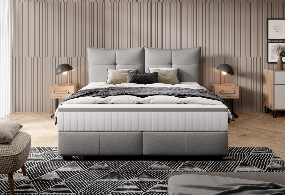 • Dvojúrovňový systém pružín: vreckové a kostrové pružiny s rozperami zaisťujú tichú prevádzku a rovnomernú podporu tela.