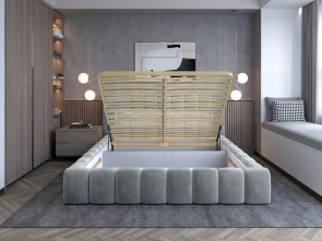 - Priestranný úložný priestor – veľký kontajner pod lôžkom umožní uložiť posteľnú bielizeň a ďalšie veci.