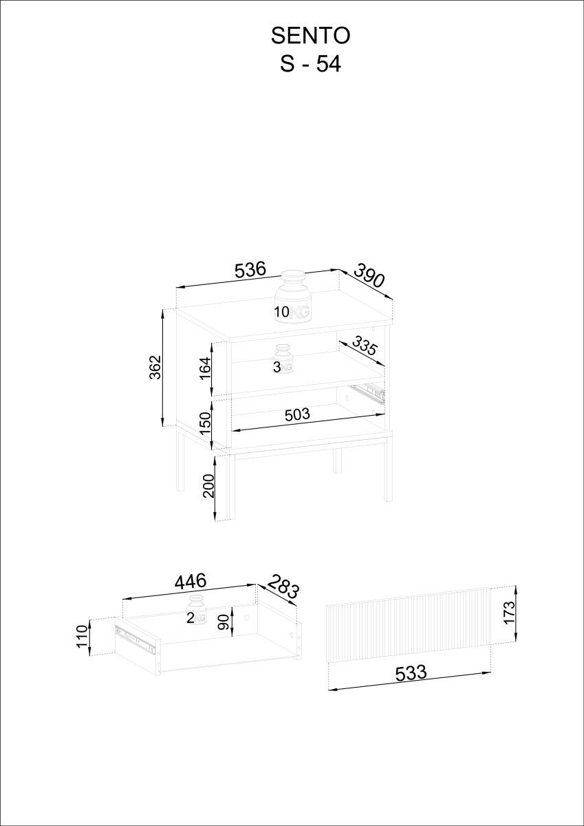Sektorový nábytok SENTO - nočný stolík S54, moderný nábytkový sektor v trendovom dizajne a výbornej kvalite prevedenia a použitých materiálov. Farebné prevedenie kašmír. Korpus je vyrobený z certifikovanej laminovanej drevotriesky v hrúbke 16 mm, dvere sú vyrobené z MDF na ktorej sú vyfrézované vertikálne drážky v hrúbke 18 mm. Hrany sú na predĺženie životnosti ohranené ABS páskou 0,5 mm, bezúchytkový systém PUSH TO OPEN, nožičky sú kovové 18x18 mm v čiernej farbe, vedenia v šuflíkoch sú guličkové s plným výsuvom, sklo je kalené - antisol čierny v hrúbke 4 mm, rámiky sú hliníkové.