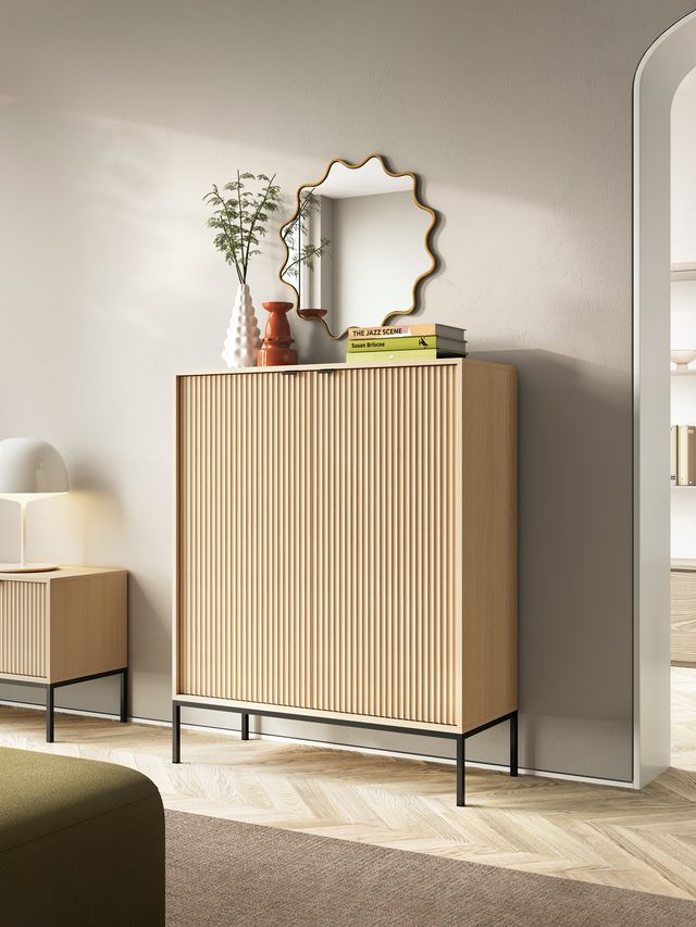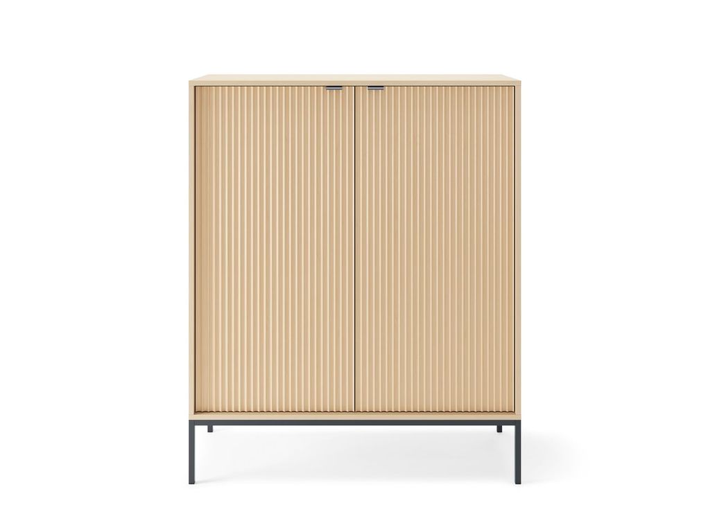 Dvojdverová komoda Nova K 104 v dekore dub Vincenza prináša do vášho interiéru pokojný, minimalistický vizuálny dojem. Elegantný dub s prirodzenou lineárnou štruktúrou napodobňuje prírodné drevo so stabilným, pravidelným vzhľadom, ktorý je esteticky príťažlivý a ľahko sa kombinuje s inými materiálmi. Textúra bola navrhnutá tak, aby dekor pôsobil čo najprirodzenejšie, ideálna pre tých, ktorí hľadajú prírodný drevený look bez príliš tmavého alebo rustikálneho efektu.