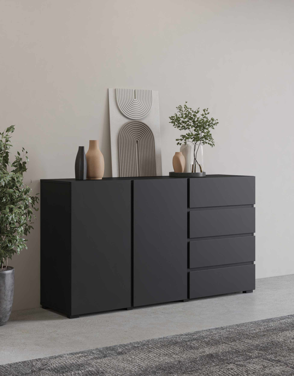 Premeňte svoju obývačku na galériu moderného dizajnu. Dizajn, ktorý definuje priestor. Obývacia stena ASYMETRIC od renomovaného výrobcu IMS Helvetia predstavuje dokonalú symbiózu čistých línií, funkčnosti a odvážneho matného dizajnu. Tento systém je navrhnutý pre tých, ktorí hľadajú výnimočnosť a chcú vystúpiť z radu konvenčného nábytku. Kolekcia ASYMETRIC sa vyznačuje bezúchytkovým systémom a unikátnym členením frontov, ktoré vytvára dynamický, asymetrický vizuál. Korpusy aj dvierka sú vyrobené z certifikovanej, laminovanej drevotriesky odolnej voči poškriabaniu, ohranené ABS páskou na predĺženie životnosti.