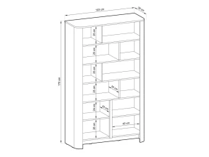 Moderný regál s množstvom otvorených priehradok a dolnou uzavretou časťou, ideálny na knihy, dekorácie alebo úložné boxy.