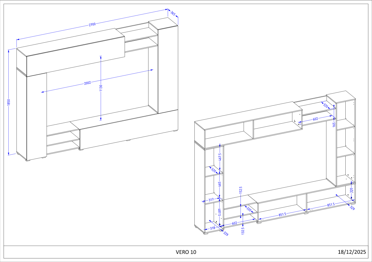 Rozmery: šírka 270 cm x výška 185 cm x hĺbka 37 cm