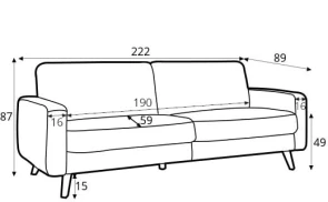 Moderný rozťahovací trojsed NAPPA s nádychom škandinávskeho štýlu. Charakteristický je vysokými nožičkami, vďaka ktorým pôsobí ľahko a jemne, má efektne preštie na chrbtovej opierke a bokoch. Trojsedačka NAPPA je krásny kus nábytku, ktorý poskytne pohodlie a svojim vzhľadom ulahodí oku. Rozkladá sa veľmi jednoducho, úložný priestor je pod sedacou časťou.