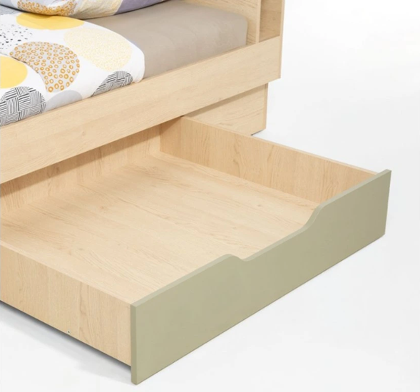 Farebné ladenie kombinuje dub piškotový a jemný eukalyptus, čo vytvára pokojné a príjemné prostredie. Pre zvýraznenie hravosti je súčasťou zostavy aj farebný prvok SALSA, ktorý vniesie do priestoru temperament a živé akcenty.