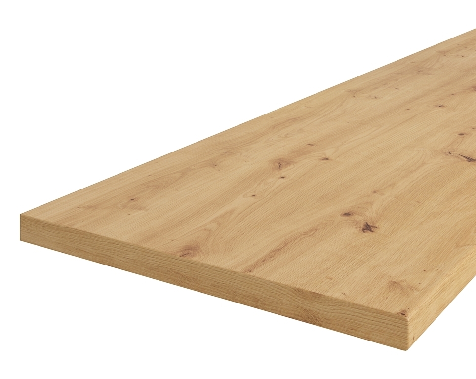 Pracovná doska je vyrobená vo farebnom prevedení Dub Artisan, ktoré dodáva kuchyni príjemný, prírodný vzhľad a nadčasový štýl.