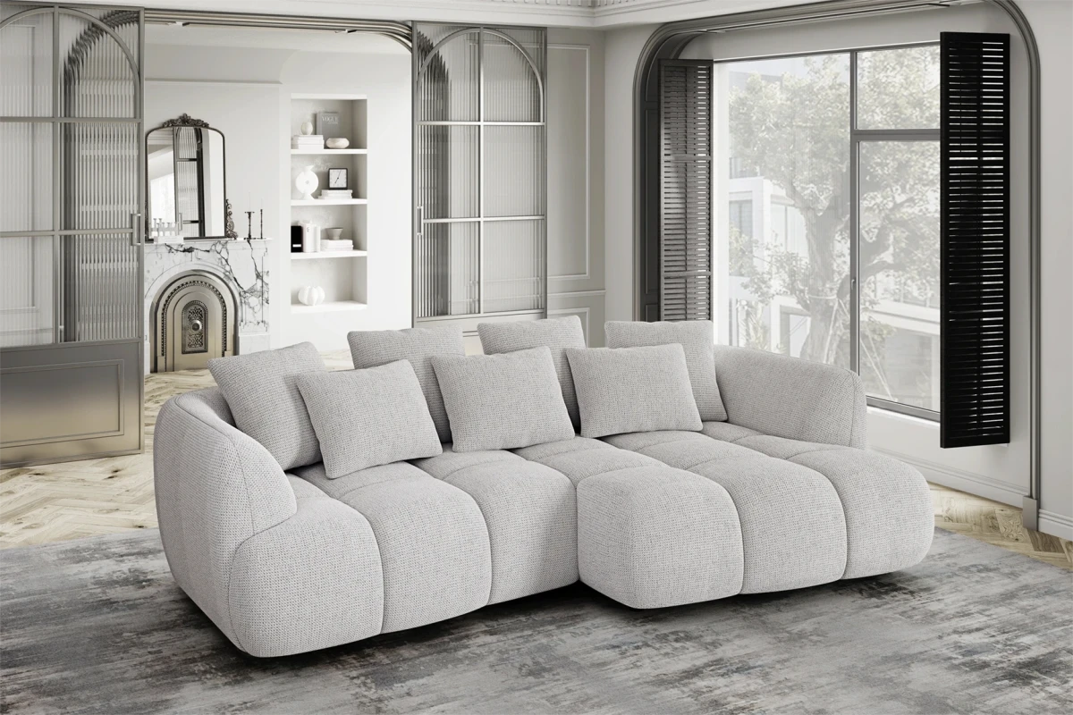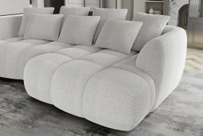 Kvalitné materiály - široký výber prémiových poťahových látok, vrátane populárnych štruktúrovaných tkanín typu Bouclé, ktoré podčiarkujú jej unikátny reliéf.