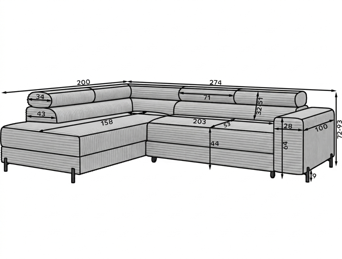 - Rozmery sedačky: 274 × 200 × 93 cm