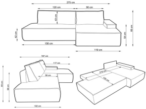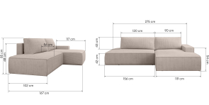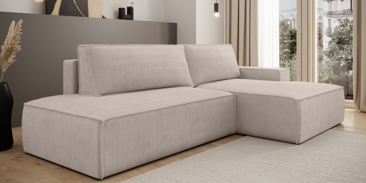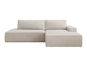 Sedačka ponúka pevne čalúnené sedadlá a mierne naklonené operadlá, ktoré garantujú pohodlné sedenie aj relaxáciu. Na otomanovej časti sa nachádza širšia opierka na ruku, zatiaľ čo druhá strana je otvorená a voľne prístupná, čo podporuje neformálne sedenie a flexibilitu používania.