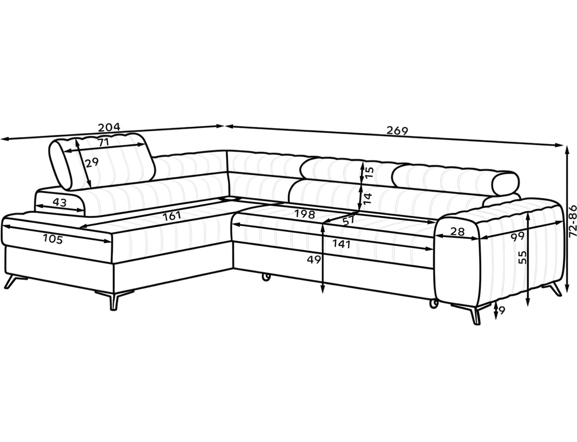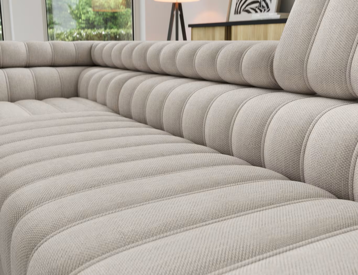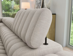 Rohová sedačka Kanedo je moderný dizajnový prvok, ktorý vyniká vertikálnym prešívaním sedacej aj operadlovej časti, čím vzniká výrazný a esteticky pôsobivý vzhľad. Je v ponuke vo viacerých kvalitných poťahových látkach s rôznou štruktúrou aj farebným prevedením, takže si ju môžete prispôsobiť podľa štýlu interiéru a osobných preferencií. Elegantný vzhľad dopĺňajú čierne kovové nožičky, ktoré opticky odľahčujú konštrukciu a zároveň zabezpečujú stabilitu a nadčasový štýl vhodný do moderných interiérov.