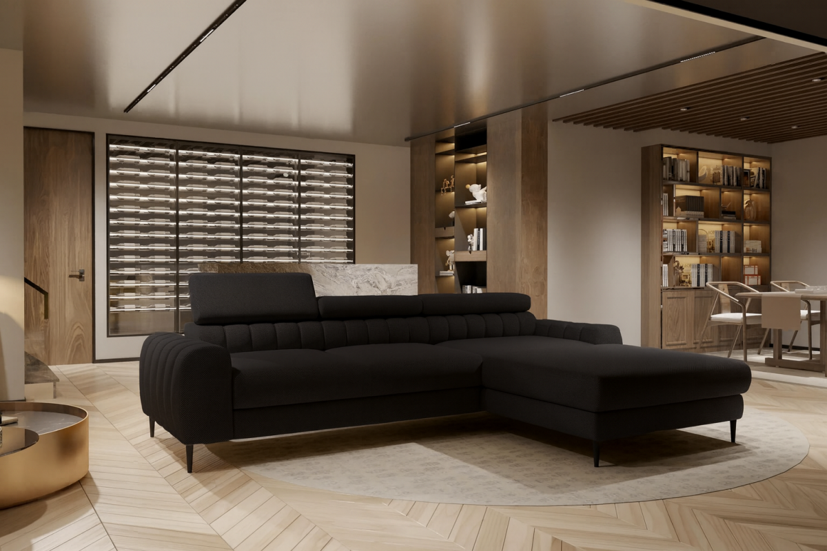 Sedacia súprava NAVAS S zaujme na prvý pohľad svojím moderným vzhľadom a funkčnosťou. Je postavená na vysokých čiernych kovových nožičkách, ktoré jej dodávajú ľahkosť a zároveň uľahčujú upratovanie pod ňou. Vertikálne prešívaná chrbtová opierka dodáva celej súprave elegantný a sofistikovaný vzhľad. Komfort pri sedení zvyšujú nastaviteľné opierky hlavy, vďaka ktorým si jednoducho prispôsobíte polohu podľa svojich potrieb. Súprava je navyše rozkladacia, čo poskytuje pohodlný priestor na príležitostné spanie. Praktickosť dopĺňa úložný priestor ukrytý v otomane, ideálny na odkladanie prikrývok, vankúšov či iných doplnkov.