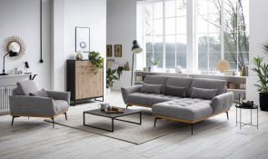 Sedacia súprava PABLO je ideálnou voľbou pre zariadenie moderných, minimalistických a škandinávskych interiérov. Spojuje luxusný dizajn, vysokú funkčnosť a mimoriadne pohodlné sedenie. Vďaka elegantným líniám a kontrastu masívneho dubového prvku s industriálnymi čiernymi kovovými nohami sa stane výrazným doplnkom každej obývačky.